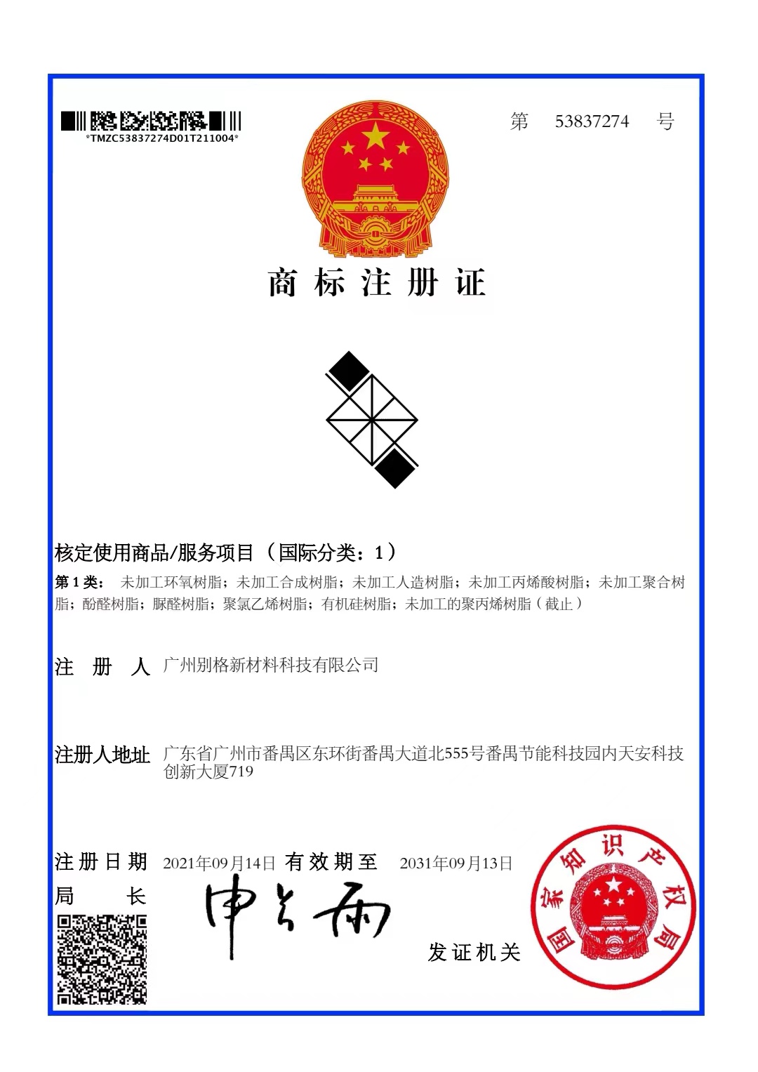 商(shāng)標注冊證1